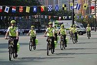 The First Aid Bicycle Team (Chinese: 急救單車隊) was established in 2002. First aid cyclists provide first aid services on Saturdays, Sundays and public holidays for people travelling to Tai Po, Ma On Shan, and Shatin.