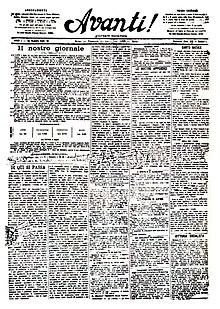 On 23 April 1919, the newspaper, printed in Turin, launched a "solidarity plebiscite" urging its readers and militants to subscribe for rebuilding the headquarter of Milan.[23] and on 3 May 1920, Avanti! returned to be printed in the Lombard city.[24]