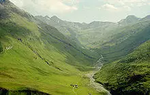 Despite being surrounded by Romansh speaking areas and the Italian speaking side valley of Valle di Lei, the people here speak German due to the Walser immigrants that settled the higher and remote valleys in Graubünden after migrating from the west. Their culture can be followed on a multi-day hike through all of the Canton of Graubünden, called the Walserweg.[6]