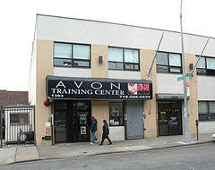 Avon uses both door-to-door salespeople ("Avon ladies", as well as "Avon men") and brochures to advertise its products.[37] The first Avon lady was Persis Foster Eames Albee. Avon operates training centers for potential representatives. Some Avon training centers have a small retail section with skin care products, such as creams, serums, makeup, and washes. Avon recruits sales representatives who sell beauty products, jewelry, accessories, and clothing.[38]