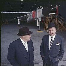 The need for a newer and much more powerful interceptor aircraft was clear even before the CF-100 entered service. The CF-105 Arrow was rolled out on 4 October 1957, coincidentally the very same day the USSR launched Sputnik 1 into orbit, heralding the dawn of the space age and potentially the end of the Arrow's main target, the long-range bomber. The design was a development of the C104, but with the delta wing raised to the top of the fuselage allowing for simplified structure, easier access to the engines and the weapons bay in the belly, as well as a weapons bay larger than that of the B-24 Liberator or Lancaster bombers. The aircraft was very advanced, powerful, and broke numerous records. Many "firsts" were included, such as fly-by-wire technology, and simultaneous development of a new weapons fire control system and the advanced Orenda Iroquois engine. The weapons were stored in an interchangeable pod in the internal weapons bay, allowing for ease of re-arming and switching from missiles to other kinds of weapons. Only the Mark 1 model (with lower-powered American engines) flew, including one that reached Mach 1.98.[15] A total of five Mark 1 aircraft were completed with several of the 29 Mark 2 models (with more powerful Iroquois engines) on the production line nearing completion. The sudden cancellation of the Arrow project by the Canadian government on 20 February 1959 led to a massive corporate downsizing and an attempt to further diversify. Many Avro Aircraft Ltd. engineers who remained were reassigned to marine, truck and automobile projects. Numerous engineering and technical staff left Avro Canada primarily for the United Kingdom and the United States in a rapid "brain drain".[2]