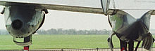 The Type 716 Shackleton MR 3 was another redesign in response to crew feedback and observations. A new tricycle undercarriage was introduced, the fuselage was increased in all main dimensions and had new wings with better ailerons and tip tanks.[19] The weapons capability was also upgraded to include homing torpedoes and Mk 101 Lulu nuclear depth bombs.[16] To reduce crew fatigue on 15-hour flights, the sound deadening was improved and a proper galley and sleeping space were included. Due to these upgrades, the takeoff weight of the RAF's MR 3s had risen by over 30,000 lb (13,600 kg) (Ph. III) and assistance from Armstrong Siddeley Viper Mk 203 turbojets was needed on takeoff with a 5-minute limit. The Griffons had to be run at high power for very long periods after a heavyweight take-off so the Vipers were later cleared to run for four hours continuously so lower Griffon power settings could be used which reduced the risk of failures.[20][21][22] The extra strain took a toll on the airframe, and flight life of the RAF MR 3s was so reduced that they were outlived by the MR 2s. Due to the arms embargo against South Africa, the SAAF's MR 3s never received these upgrades but were maintained independently by the SAAF.