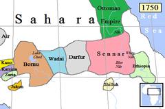 Around 1810 a Majabra trader from Jalu named Schehaymah became lost while travelling to Wadai via Murzuk in the Fezzan. He was found by some Bidayat, who took him via Ounianga to Wara, the old capital of Wadai. The Sultan of Wadai, Abd al-Karim Sabun (1804–1815) agreed with Schehaymah's proposal to open a caravan route to Benghazi along a direct route through Kufra, and Awjila / Jalu. This new route would bypass both Fezzan and Darfur, states that until then had controlled the eastern Saharan trade. The first caravans travelled the route between 1809 and 1820.[20]
