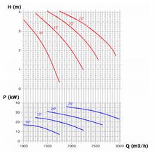 The performance characteristics of an axial flow pump is shown in the figure. As shown in the figure, the head at the zero flow rate can be as much as three times the head at the pump’s best efficiency point. Also, the power requirement increases as the flow decreases, with the highest power drawn at the zero flow rate. This characteristic is opposite to that of a radial flow centrifugal pump where power requirement increases with an increase in the flow. Also the power requirements and pump head increases with an increase in pitch, thus allowing the pump to adjust according to the system conditions to provide the most efficient operation.