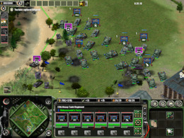 Like in other RTS games, the player must expend resources to construct buildings and recruit units to fight the enemy, while maintaining an economy, progressing through a build tree, and researching upgrades. In standard gameplay, the player deploys building trucks from a Corps HQ, the main military headquarters building. These building trucks can "unpack" into all other essential buildings, which aid in producing combat units, technologies, and the three major resources of the game: money, ammo, and oil.[1][18][14] Money is obtained as a constant flow of revenue from specific buildings and is used to purchase combat units and technologies, whereas ammo and oil are static resources provided by buildings, and are used for combat unit upkeep.[19][1] Combat units of their corresponding types are deployed from four classes of buildings: Infantry, Airborne, Mechanized, and Armor Division HQs.[19][14]