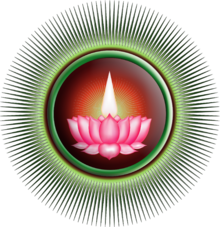The symbol of Ayyavazhi is a lotus carrying a flame-shaped white Namam.[77] The lotus represents the 1,008-petalled Sahasrara (in Tamil, Ladam), while the Namam represents the Aanma Jyothi or atman.[77] Both of the Ayyavazhi scriptures[78][79] refer to Thirunamam (the "flame shaped symbol" present in the top of the Lotus in the Ayyavazhi symbol), but not to the lotus directly. The symbol is the ideological summary of Akilam-based philosophy. This symbol has been in use since the mid-20th century.[80]