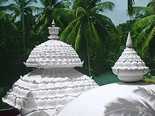 Ayyavazhi architecture was developed in constructing Nizhal Thangals, where the inverted lotus flower of Sahasrara is used to cover the roof.[84] The lotus may also represent the heart and the flame shape (Thirunamam), the divinity.[85] Ayyavazhi has used other symbols including Vaishnavite ' Triple Namam '(not used currently), and Conch.