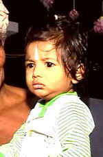 Thiru (word representing sacredness) + Namam (name) represents (The Sacred name). The people of Ayyavazhi wear a vertical white mark on the forehead in the shape of a flame, starting from the central point between the eyebrows, going straight up near the top edge of the forehead.