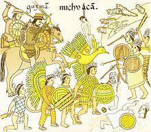At the same time as the Aztec Empire was expanding and consolidating power, the Purépecha Empire in West Mexico was similarly expanding. In 1455, the Purépecha under their king Tzitzipandaquare had invaded the Toluca Valley, claiming lands previously conquered by Motecuzoma and Itzcoatl.[35] In 1472, Axayacatl re-conquered the region and successfully defended it from Purépecha attempts to take it back. In 1479, Axayacatl launched a major invasion of the Purépecha Empire with 32,000 Aztec soldiers.[35] The Purépecha met them just across the border with 50,000 soldiers and scored a resounding victory, killing or capturing over 90% of the Aztec army. Axayacatl himself was wounded in the battle, retreated to Tenochtitlan, and never engaged the Purépecha in battle again.[36]