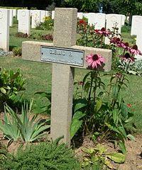 The Bény-sur-Mer Canadian War Cemetery (French: Cimetière militaire canadien de Bény-sur-Mer) is a cemetery containing predominantly Canadian soldiers killed during the early stages of the Battle of Normandy in the Second World War. It is located in and named after Bény-sur-Mer in the Calvados department, near Caen in lower Normandy. As is typical of war cemeteries in France, the grounds are beautifully landscaped and immaculately kept. Contained within the cemetery is a Cross of Sacrifice, a piece of architecture typical of memorials designed by the Commonwealth War Graves Commission.