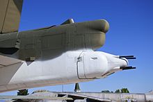To improve operations at low altitude, the AN/ASQ-151 Electro-Optical Viewing System (EVS), which consisted of a low light level television (LLLTV) and a forward looking infrared (FLIR) system mounted in blisters under the noses of B-52Gs and Hs between 1972 and 1976.[99] The navigational capabilities of the B-52 were later augmented with the addition of GPS in the 1980s.[100] The IBM AP-101, also used on the Rockwell B-1 Lancer bomber and the Space Shuttle, was the B-52's main computer.[101]