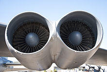 In 2014, the USAF was reviewing industry studies of engine replacement. As of 2014, the engine retrofit had not been approved. In late 2014, it was reported that the DOD and unnamed private companies were exploring a leasing program where private lease companies would purchase new engines and lease them to the USAF. DOD costs would be determined by depreciation and actual usage with no up-front lump payments.[123] In 2018, the USAF proposed another plan to re-engine the B-52, known as the Commercial Engine Re-engining Program (CERP). A request for proposals was planned for mid-2019, with service entry by 2024. Possible contender engines to replace the TF33 including the General Electric CF34, the General Electric Passport, the Pratt & Whitney PW815 and the Rolls-Royce BR725.[128][129][130] On 23 April 2020 the USAF released its request for proposals for 608 commercial engines plus spares and support equipment, with the plan to award the contract in May 2021.[131]