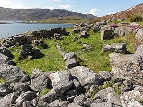 Other places of interest on the island include a ruined church and museum at Cille Bharra, a number of Iron Age brochs such as those at Dùn Chuidhir and An Dùn Bàn, and a range of other Iron Age and later structures which have recently been excavated and recorded.