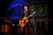 In 1989, Beck caught a bus to New York City with little more than $8.00 and a guitar.[11] He spent the summer attempting to find a job and a place to live with little success.[11] Beck eventually began to frequent Manhattan's Lower East Side and stumbled upon the tail end of the East Village's anti-folk scene's first wave.[5] Beck became involved in a loose posse of acoustic musicians—including Cindy Lee Berryhill, Kirk Kelly, Paleface, and Lach, headed by Roger Manning—whose raggedness and eccentricity placed them well outside the acoustic mainstream.[14][16] "The whole mission was to destroy all the clichés and make up some new ones," said Beck of his New York years. "Everybody knew each other. You could go up onstage and say anything, and you wouldn't feel weird or feel any pressure."[16] Inspired by that freedom and by the local spoken-word performers, Beck began to write free-associative, surrealistic songs about pizza, MTV, and working at McDonald's, turning mundane thoughts into songs.[16] Beck was roommates with Paleface, sleeping on his couch and attending open mic nights together.[17] Daunted by the prospect of another homeless New York winter, Beck returned to his home of Los Angeles in early 1991.[14][18] "I was tired of being cold, tired of getting beat up," he later remarked. "It was hard to be in New York with no money, no place [...] I kinda used up all the friends I had. Everyone on the scene got sick of me."[11]