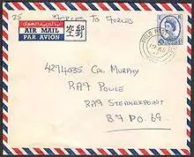 - ^ Edward Wells (1987). 'Mailshot – A history of the Forces Postal Services' p. 11. Defence Postal & Courier Services, London.