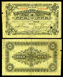 BPI was founded during the Spanish colonial era of the Philippines as El Banco Español Filipino de Isabel II. It provided credit to the National Treasury and printed and issued the Philippine peso fuerte, a precursor to today's Philippine peso.[13][14]