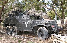 The Soviet Union donated at least six BTR-152s to Mozambique shortly after that country's independence in the mid 1970s.[16] Mozambican BTR-152s were deployed against Rhodesian Security Forces conducting cross-border raids,[27] as well as in search and destroy operations mounted near Mozambican National Resistance (RENAMO) strongholds.[28] It is likely that all Mozambique's BTR-152s were eliminated by land mines or Rhodesian air strikes;[28] they were not in service long before being superseded by the BTR-60.[29] A second shipment of BTR-152s was delivered to the People's Forces of Liberation of Mozambique (FPLM) in 1983, but it remains unclear whether these were deployed in front-line service.[16]