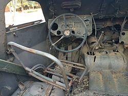 Most Soviet BTR-152s were powered by a six-cylinder ZIL-123 in-line water-cooled petrol engine developing 110 hp at 2,900 rpm.[11] Those based on the chassis and components of the ZIL-157 utility truck utilized a slightly different ZIL-137K engine.[6] There are several engine louvers on the front of the hull to prevent overheating; these could be safely closed for short intervals during combat, as long as the driver reduced speed and avoided overtaxing the vehicle.[5] A BTR-152's gearbox comprised five forward gears and one reverse gear with a two-speed transfer box. Fifth gear had an overdrive.[11] The suspension consisted of conventional leaf springs with hydraulic shock absorbers.[11]