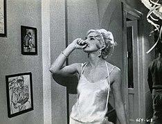 The name was popularized by the 1956 movie Baby Doll, starring Carroll Baker in the title role as a 19-year-old nymphet. This marked the beginning of the enduring popularity of the style for adults. Babydoll pajamas in the 1950s through the 1960s consisted of a top and a loose fitting short bloomer bottom with elasticized waist and legs. In the 1970s through the 1990s, the bloomer bottom was replaced by closer fitting briefs with elastic waist and legs. The most recent versions of babydoll pajamas have eliminated the elastic on the legs, the bottoms being either shorts or tap pants.