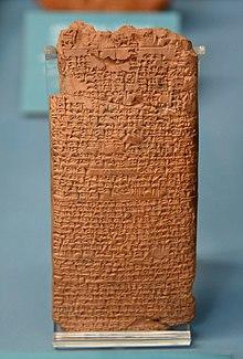 The oldest Babylonian (i.e., Akkadian) texts on medicine date back to the First Babylonian dynasty in the first half of the 2nd millennium BCE[28] although the earliest medical prescriptions appear in Sumerian during the Third Dynasty of Ur period.[29] The most extensive Babylonian medical text, however, is the Diagnostic Handbook written by the ummânū, or chief scholar, Esagil-kin-apli of Borsippa,[30] during the reign of the Babylonian king Adad-apla-iddina (1069–1046 BCE).[31]