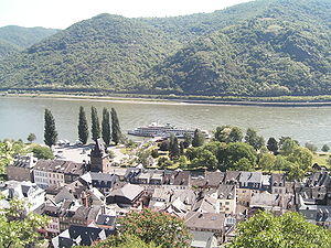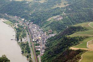 The town lies in the Rhine Gorge, 48 km south of Koblenz.