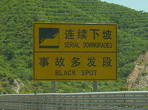 Kilometre sections 50-55 of the expressway into Beijing has what the road sign labels as "serial downgrades". It actually means that there are continuous curves heading downward, spiralling downward. If one speeds in this section, fatal accidents can occur—and many have, racking up a horrendous death toll. Thus the nickname "valley of death". It begins right after the first tunnel after the expressway splits at Badaling, entering Beijing.