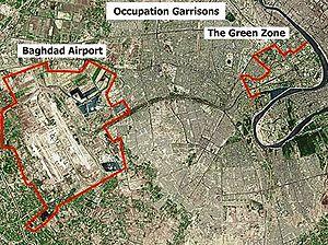 The Baghdad Airport Road is a 12-kilometre (7.5 mi) stretch of highway in Baghdad, Iraq linking the Green Zone, a heavily fortified area at the centre of Baghdad, to Baghdad International Airport (BIAP). It also links different parts of Baghdad to the Airport and connects neighbouring areas to each other. It became prominent after the 2003 invasion of Iraq following its capture by the Coalition Forces. Although it was commonly referred to by the military Main Supply Route (MSR) designation Route Irish, the route from the International Zone to the airport stretches over two MSRs: Route Aeros, the section leading into and out of the International Zone, and Route Irish, which stretches east from the airport, then turns south (past the junction with Route Aeros) to a junction with Highway 1 (MSR Tampa).