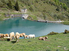 The area had recovered by 1171, when Centule III, count of Bigorre, granted "Aquae Convenarum" a liberal charter.[11] The bill of rights and franchises lists four villages in the area protected by ramparts. By 1313, 800 "fires" (i.e., taxable homesteads) were recorded, making Bagnères as large as Tarbes, the county seat.[5] The town was a place of manufacture and trade, with only 40% directly involved in agriculture. Mills were erected on widened canals fed by the Adour; in addition to grinding wheat, they were used to stamp cauldrons, forge scythes, and tanning hides.[5] The Black Death reached the town in 1348. Amid the Hundred Years' War, the town fell into English possession in 1360 before suffering a second outbreak of plague the following year. Henri de Trastámara, an ally of the French king, plundered, ransomed, and razed the town in 1427. Two years later there were no more than 291 "fires" in Bagnères, although the town slowly repopulated.[5]
