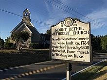 In 1812 a 2-acre (8,100 m2) tract was conveyed to church trustees. The church was placed within the Granville Circuit of the Virginia Conference. Washington Duke, who was born on December 20, 1820 and became the patriarch of the “Dukes of Durham,” was converted to Methodism at the church. His parents, Taylor and Dicey Jones Duke, were members at Mount Bethel. The gifts of the Duke family to Methodist causes, not the least of them the establishment of Duke University, are many. Duke is said to have claimed that “whatever I am, I accredit to the Methodist circuit riders.”