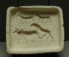 The first evidence of baking occurred when humans took wild grass grains, soaked them in water, and mixed everything together, mashing it into a kind of broth-like paste.[3] The paste was cooked by pouring it onto a flat, hot rock, resulting in a bread-like substance. Later, when humans mastered fire, the paste was roasted on hot embers, which made bread-making easier, as it could now be made any time fire was created. The world's oldest oven was discovered in Croatia in 2014 dating back 6500 years ago. The Ancient Egyptians baked bread using yeast, which they had previously been using to brew beer.[4] Bread baking began in Ancient Greece around 600 BC, leading to the invention of enclosed ovens.[4] "Ovens and worktables have been discovered in archaeological digs from Turkey (Hacilar) to Palestine (Jericho (Tell es-Sultan)) and date back to 5600 BC."[5]