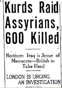 - ^ "There was reported a renewed assault upon Assyrian villages by the Kurds, and in mid-August British sources claimed some 500 Assyrians had been killed, 200 of whom were claimed to be women and children not involved in the fighting. The British government of Ramsay MacDonald was reported to be "profoundly disturbed,"... the British were once more reported to be in a state of great agitation over a homeland for their "ex-allies," and unhappy at what was happening to them at the hands of both the Iraqi armed forces, and the Kurds, who were now assessed to have "butchered them by the hundreds." The Man Who Invented Genocide: The Public Career and Consequences of Raphael Lemkin, James Martin, Institute for Historical Review, 1984 p.252-3