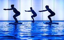 Above-water balance boards sit on top of the water where the person has to balance themselves without falling. Often times physical therapists will incorporate Yoga stretches to make the balancing act more challenging. The boards can be tethered with rope so you don't drift off and bump into other participants. In just a few minutes the bodies core can receive a good workout.[15]
