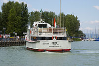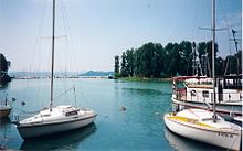 The port was opened in 1905 and is still one of the largest harbours around Lake Balaton. Two curved piers provide a protected harbor for yachts, boats and ships. The material dredged in order to create the harbour was used to build an artificial island. This artificial island is called Galamb Sziget ('Pigeon Island'). The name is derived from the decorative dovecotes mounted on pillars on the small bridge used to cross from the mainland to the island. The island has a number of poplar trees and footpaths and is home to the local sailing club.