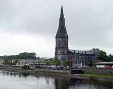 In the first half of the 19th century, the rural areas around Ballina were heavily dependent on the potato as a primary source of food. When a potato blight struck in 1846, widespread starvation occurred. The Ballina workhouse served the entire northwestern coast of Mayo. As the famine took hold in the rural areas, huge numbers of starving peasants requested admission to the overcrowded facility. In February 1847 people were dying of fever at the rate of almost ninety persons a week.[8] There were attempts at mitigating the crisis by some local citizens. Francis Kinkead, the Church of Ireland curate in Ballina, who came to Ballina in 1837 and died on 27 January 1847, played a role in organising funds to help relieve the suffering of both the Catholic and Protestant populations. A marble memorial tablet on the wall of the Church of Ireland in Ballina is dedicated to Kinkead.