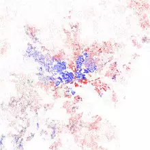 Driven by migration from the deep South and by white suburbanization, the relative size of the city's black population grew from 23.8% in 1950 to 46.4% in 1970.[65] Encouraged by real estate blockbusting techniques, recently settled white areas rapidly became all-black neighborhoods, in a rapid process which was nearly total by 1970.[66]