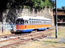 Philadelphia SEPTA PCC streetcar placed in service at the Museum in September 2009. This car was built by the St. Louis Car Co. for the Philadelphia Transportation Company in 1947, and lasted in SEPTA service until 1992.