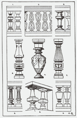 - ^ The early sixteenth-century theoretical writer Diego da Sangredo (Medidas del Romano, 1526) detected this derivation, N. Llewellyn noted, in "Two notes on Diego da Sangredo: 2. The baluster and the pomegranate flower", in Journal of the Warburg and Courtauld Institutes 40 (1977:240-300); Paul Davies and David Hemsoll's detailed history, "Renaissance Balusters and the Antique", in Architectural History 26 (1983:1–23, 117–122) p.8 notes uses of the word in fifteenth-century documents and explores its connotations for sixteenth-century designers, pp 12ff.