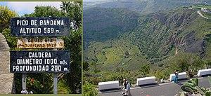 The Bandama Natural Monument is part of the Tafira Protected Landscape on the island of Gran Canaria in the Canary Islands, Spain. It's considered a point of geological interest, because of the Caldera de Bandama. This volcanic crater, which is geologically a maar rather than a caldera,[1] reaches 569 m (1,867 ft) above sea level at the highest point on its rim, Pico de Bandama, and is about 1,000 m (3,300 ft) wide and 200 m (700 ft) deep.