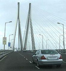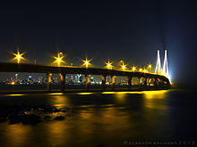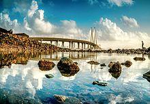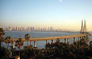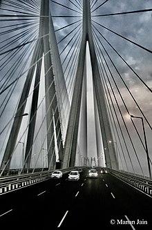 The Bandra–Worli Sea Link (officially known as Rajiv Gandhi Sea Link[1]) is a bridge that links Bandra in the Western Suburbs of Mumbai with Worli in South Mumbai. It is a cable-stayed bridge with pre-stressed concrete-steel viaducts on either side. It is a part of the proposed Western Freeway that will link the Western Suburbs to Nariman Point in Mumbai's main business district.