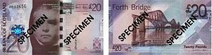 - ^ Scotland BOS new 20-pound polymer notes unveiled Banknote News (banknotenews.com). 7 November 2019. Retrieved on 7 November 2019.