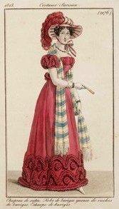 - ^ Parisian Costume No. 2060: Hat in gauze, ornamented with satin ribbons. Merino wool gown garnished with knotted satin. A Barèges jersey with gold knots., consulted on 11 August 2014 (in French)