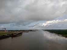 The Baram River (Malay: Sungai Baram) is a river in Sarawak on the island of Borneo. The river originates in the Kelabit Highlands, a watershed demarcated by the Iran Mountains of East Kalimantan, which form a natural border with Sarawak. The river flows westwards through tropical rainforest to the South China Sea.[2][3] The Baram River terminates in a delta, which is subdivided into two units: East Barma Delta of Middle-Late Miocene age and West Baram Delta of Late Miocene-Quaternary age.[4] The western unit is composed of mudstones enriched in organic components (total organic carbon content is more than 1.0 wt.%) which constitute substantial oil and gas reserves.[5]