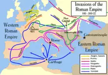 The Romans used the term barbarus for uncivilised people, opposite to Greek or Roman, and in fact, it became a common term to refer to all foreigners among Romans after Augustus age (as, among the Greeks, after the Persian wars, the Persians), including the Germanic peoples, Persians, Gauls, Phoenicians and Carthaginians.[19]