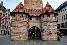 In the Middle Ages, barbicans were typically situated outside the main line of defenses, and were connected to the city walls with a walled road called the neck.[1] In the 15th century, with the improvement in siege tactics and artillery, barbicans lost their significance.[2] However, several barbicans were built well into the 16th century.