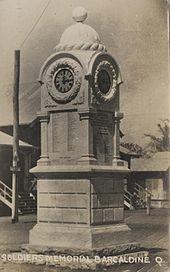 - ^ "Barcaldine War Memorial Clock (entry 600018)". Queensland Heritage Register. Queensland Heritage Council. Retrieved 6 July 2013.