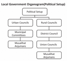 The Balochistan Local Government Ordinance (BLGO) of 1980 was intended to involve local populations in the development of their areas; it was replaced by BLGO 2001, which introduced the concept of district government. Under BLGO 2001, Barkhan District had one tehsil and eight union councils. The district was administered by a single line of administration that covered both the rural as well as the urban areas. The system continued for two tenures and was again modified through the approval of BLGA 2010. The present system, under the Local Government Act 2010, is similar to BLGO 1980 in that it emphasizes a rural-urban division, but no elections were held under the latest system.