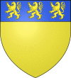 Baron Lisle was a title which was created five times in the Peerage of England during the Middle Ages and Tudor period. The earliest creation was in 1299 for John de L'Isle of Wootton on the Isle of Wight, then in the County of Southampton,[2] now in Hampshire. The family's name in French was de l'Isle and was Latinised to de Insula (both meaning "from the island"). They were also known by the Latinised cognomen de Bosco[3] (literally "from the woodland", from the Germanic word bosk, in French bois[4]) referring to their "well-wooded" seat at Woodeton/Wodingtone (today Wootton).[5] The family is assumed to have arrived in the Isle of Wight as a feudal follower of the Norman magnate Richard de Redvers (d.1107),[6] Lord of the Isle of Wight and feudal baron of Plympton in Devon,[7] and father of Baldwin de Redvers, 1st Earl of Devon. Below the de Redvers family that of de Lisle was the most important on the Island.[8] John de Lisle, 2nd Baron Lisle (c.1281-1331) married Roesia de Cormeilles, daughter and heiress of Sir John de Cormeilles of Thruxton in Hampshire, which thenceforth became the de Lisle's principal seat.[9] Bartholomew de Lisle, 3rd Baron Lisle (1308-1345) married Elizabeth de Courtenay, a daughter of Hugh de Courtenay, 1st/9th Earl of Devon (1276–1340),[10][11] successor to de Redvers, although no longer Lord of the Isle of Wight, which was sold in 1293 to King Edward I by Isabel de Forz, daughter and heiress of the last de Redvers Earl. The arms of Lisle of Wootton were: Or, on a chief azure three lions rampant of the first,[12] as is visible on the monumental brass in Thruxton Church of John de Lisle, 5th Baron Lisle (1366-1408),[13] which also shows the arms of de Lisle impaling Courtenay, possibly for an unknown second wife of the 5th Baron, or possibly as a commemoration of the marriage of the 3rd Baron.[14] The 5th Baron (de jure[15]) served twice as a Member of Parliament for Hampshire in 1401 and 1404.[16] The last in the male line was John Lisle, 9th Baron Lisle (d. circa 1523),[17] whose chest tomb and recumbent effigy survives in Thruxton Church in Hampshire.[18]