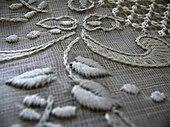 Detail of the calado embroidery on the pechera of a piña barong tagalog (c.1850)