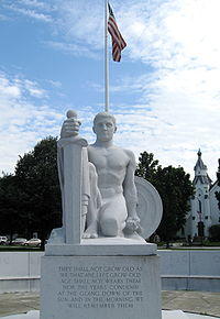 The Italian immigrants in particular brought a radical, largely anarchist labor movement to Barre. In the 1920s and 1930s, a number of granite strikes roiled the city; some disputes concerned wages, but workers increasingly mobilized to address health and hazard in the quarries and "sheds." The strike of 1922, arguably fought to a draw, raised ethnic tensions; French Canadians were painted as strikebreakers.[7] The Quarry Workers' International Union of North America was based in Barre. They were originally affiliated with the Socialist Labor Party before affiliating with the Industrial Workers of the World, and in 1916 and in 1929 the city elected a Socialist Party candidate as mayor of Barre. The old Socialist Labor Party Hall is still standing, and was listed on the National Register of Historic Places in 2000.
