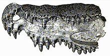 The beds are found in the Hampshire Basin, and are well exposed in the cliffs of Barton, Hordle, and on the Isle of Wight.[2][3] The cliffs at Barton are the world type locality for the Barton Beds.[4] The beds consist of grey, greenish and brown clays with bands of sand and have long been well known for the abundance and excellent preservation of their fossils.[3] More than 500 species have been recorded,[5] of which, over half are molluscs,[3] including numerous turret shells and lamellibranchs.[6] Sharks teeth are common,[6] and the beds have yielded remains of corals,[5] fishes,[3] mammals, reptiles, and birds.[4] Plant fossils are also abundant.[4] In the 1840s fossils were found in the "crocodile bed" at Hordle cliff, which belonged to an extinct species of alligator, which was subsequently named Diplocynodon hantoniensis,[7] after the county of Hampshire (Hantonia being a Latinization based on the Anglo-Saxon name Hantescire). Above the highly fossiliferous Barton Clay, there is a sandy series with few fossils; these are the Headon Hill or Barton Sands.[2] Today, the Barton Beds are rather poorly exposed in many sections due to coastal protection works.[8]
